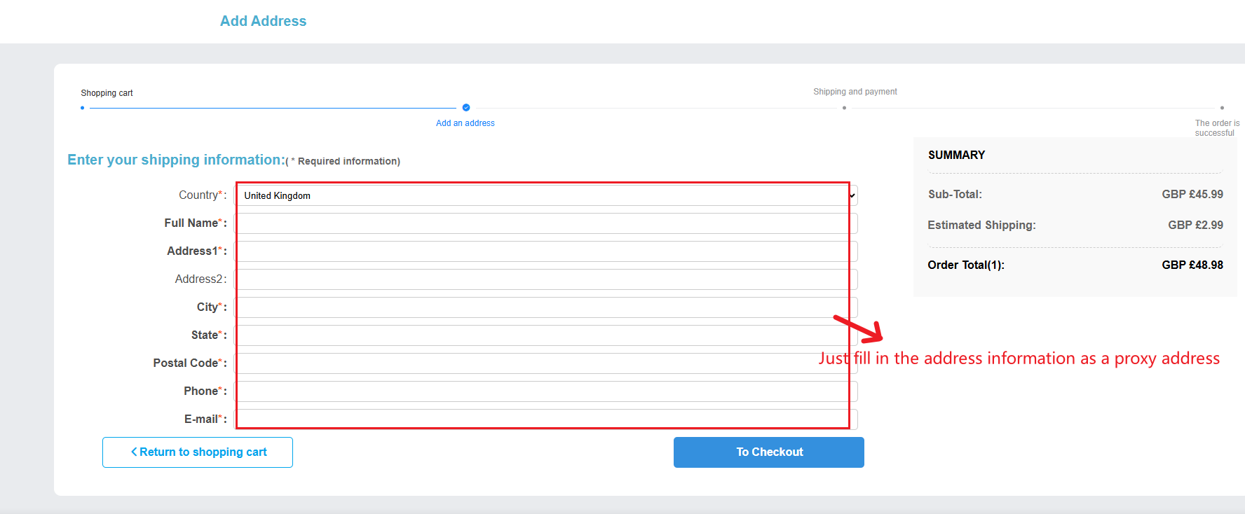 4 Senden Sie die Bestellung ab und schließen Sie die Zahlung ab. Denken Sie daran, die Lieferadresse auf die Adresse Ihres Kunden einzustellen.